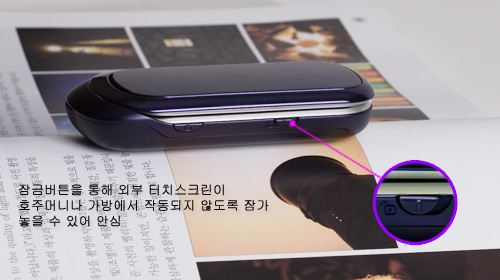 그러나 터치스크린의 외부 디스플레이가 호주머니나 가방안에서 마구 눌려 오작동을 일으키면 어떡하나?