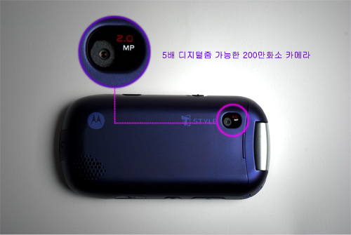 디지털줌 5배가 가능한 200만 화소의 카메라는 외부 디스플레이를 통해 폴더를 열지 않고도 촬영이 가능하다.