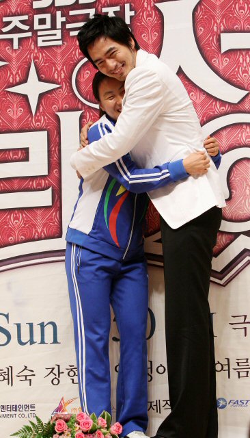 28일 서울 목동 SBS에서 열린 제작발표회에 참석한 이경원은 드라마의 주연을 맡은 배우 이진욱에게 선물을 전달하며 "힘들 때마다 '메달을 따야 이진욱씨를 만날수 있다'고 입술을 깨물고 연습했다"고 설레임을 전했다.