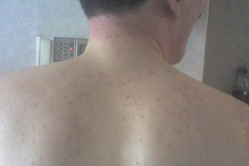 김씨는 반점이생긴 자신의 신체를 촬영해 회사측에 보냈다.