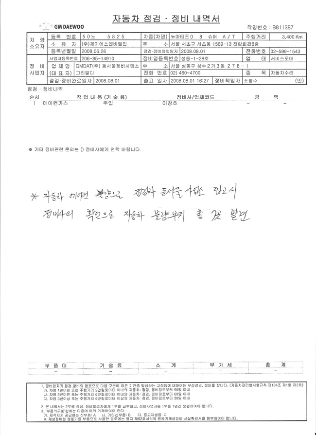 배씨는 "GM대우 동서울 정비영업소 직원이 확인서에 직접 사인까지 해줬는데도 불구 회사측이 '모르쇠'로 일관하는 것은 부당하다"며 목소리를 높였다.
