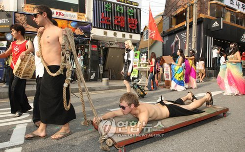 URL복사 기사공유하기 스크랩 프린트 메일보내기 글씨키우기 3일 개막한 제7회 2008 한국실험예술제에 참가한 해외작가들과 국내작가들이 서울 홍대 인근에서 예술제를 알리는 퍼레이드를 하고 있다. 오는 7일까지 열리는 이번 예술제에는 20명의 해외작가와 130명의 국내작가들이 참가한다.(사진=연합뉴스) 저작권자 © 소비자가 만드는 신문 무단전재 및 재배포 금지 뉴스관리자 다른기사 보기 URL복사 기사공유하기 주요기사 하나증권, 발행어음 출시 일주일 만에 3000억 원 완판 LG화학, 장기지속형 비마약성 국소마취제 ‘엑스파렐’ 독점 판매 젝시믹스, 새 광고모델로 덱스 발탁...'새 캠페인 전개' 크래프톤, ‘하이파이 러시’ 콘솔 실물 에디션 사전예약 금호타이어, 새해맞이 구매 고객 '사은품 증정' 이벤트 신동빈 롯데 회장, 대한체육회 감사패 수상…'스포츠 발전·선수 육성 기여'