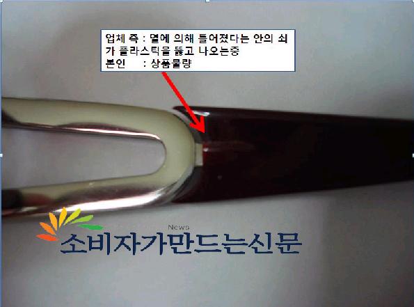 이씨는 "아무리 선글라스가 열에 약하지만 착용 6번만에 다리가 휘어지고 쇠붙이가 튀어나와 흉기로 변하는 것은 도저히 납득하기 힘들다"며 "업체 측 직원이 소비자에게 말도 안 되는 반박만 하면서 자체 과실은 인정하지 않고 소비자의 실수로 몰아가고 있어 불쾌했다"고 전했다.