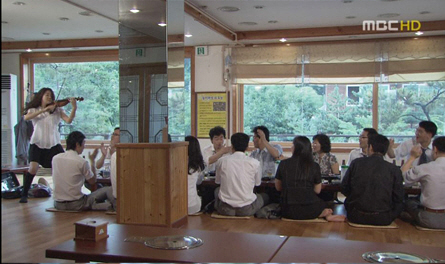 이에 음악과 현실사이에서 고민하던 이지아는 현실적인 곡 ‘빈대떡 신사’를 연주해 동료들의 흥을 돋웠다.