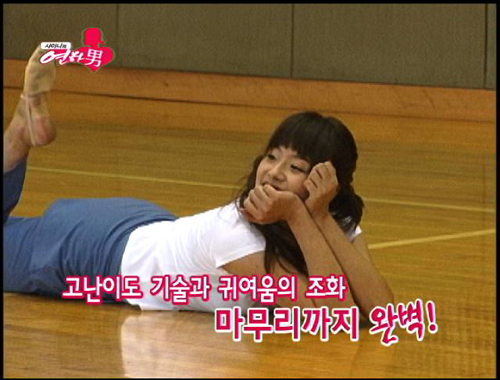 전 국가대표 리듬체조 출신인 윤이나는 이날 샤이니의 '누난 너무 예뻐'에 맞춰 리듬체조를 선보였다.