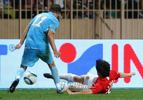 한편, 박지성은 선발로 출전해 후반 17분에 호날두와 교체되면서 62분을 뛰었지만 경기는 무승부로 끝났다. (사진 = 연합뉴스)