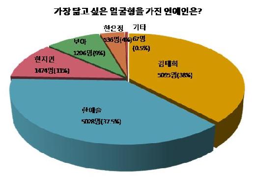 한 성형외과가 ‘가장 닮고 싶은 연예인 얼굴 선호도 조사’결과를 발표해 화제가 되고 있다.