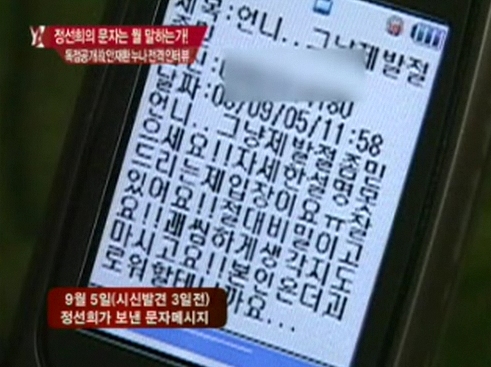 안재환의 셋째 누나 안미선씨(49)가 정선희의 문자메시지를 공개했다.