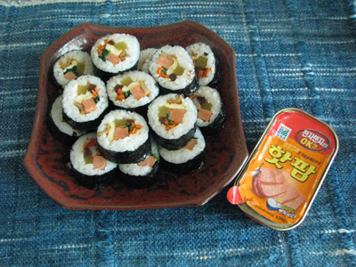 스파이시팜=김밥에 넣으면 딱이다. 기존 김밥용햄은 고기함량이 90%에 못미치고 어떤 제품은 60~70%밖에 안되기도한다. 그런 단점 때문에 고기를 양념해 조려서 넣곤 하는데 스파이시팜은 그런 번거로움을 말끔히 씻어 버렸다. 그냥 썰어서 후라이팬에 부쳤다가 김밥에 넣으면 끝~