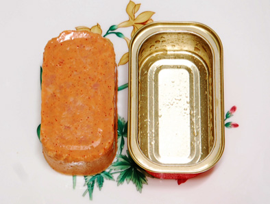 우선 용기 뚜껑으로 기존 햄과 달리 캔이 아닌 알루미늄 포일을 채택해 힘을 주거나 손을 베일 염려없이 아이들도 안전하게 딸수있도록 고안했다.손으로 잡고 부드럽게 잡아당기면 포일이 깔끔하게 벗겨진다.