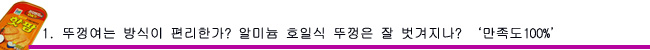 이전 캔 뚜껑식 용기에비해 편리하고 안전하다는 점에서 패널 10명전원이 만족감을 표시했다.