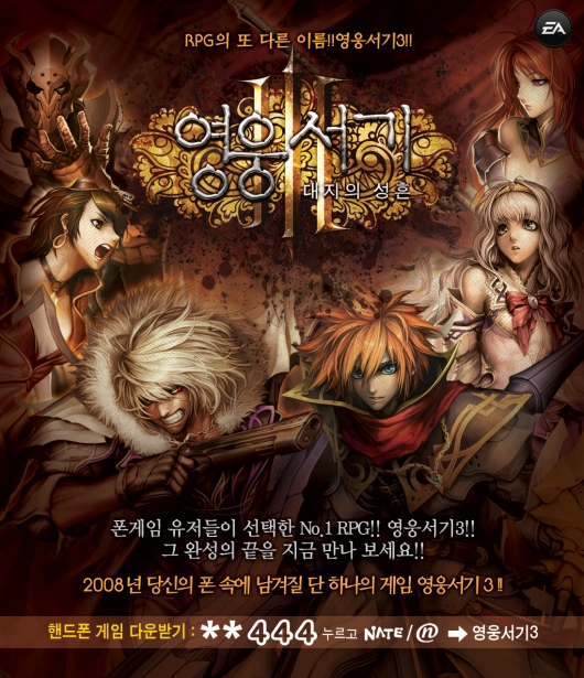 '영웅서기3-대지의성흔'은 **444+nate/magicN/show/ez-i 키를 눌러 EA모바일 무선포털에 접속하면 다운로드가 가능하다