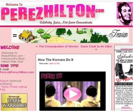 페레즈 힐튼은 미국 내 연예계의 가십을 전달하면서 미국 내 블로그 미디어의 총아로 떠 오른 파워있는 인물.