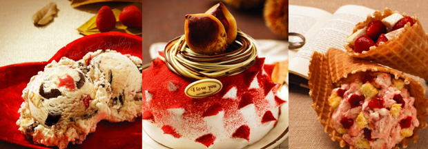 배스킨라빈스 ‘아이스크림 케익은 이미 두터운 매니아 층을 형성하고 있는 대표 메뉴. 즐거운 자리에 절대 빠질 수 없는 필수품으로 자리잡았다. 일반 베이커리 케익을 능가하는 고급디자인과 독특한 장식들이 축하의 자리를 더욱 빛나게 한다.