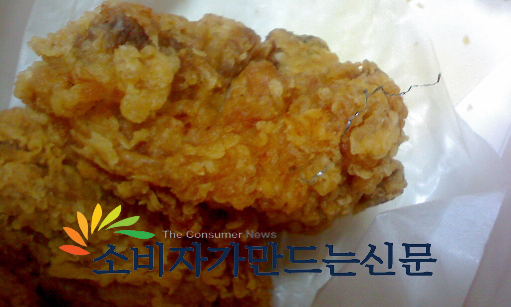 치킨전문 대형체인점인 KFC의 치킨에서 철수세미 조각을 발견한 소비자의 하소연이다.