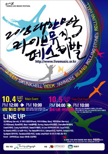 국내 최대 규모의 음악축제 중 하나인 ‘2008 대한민국 라이브 뮤직 페스티벌’이 오는 10월 4일부터 5일까지 이틀간 성대하게 열린다.