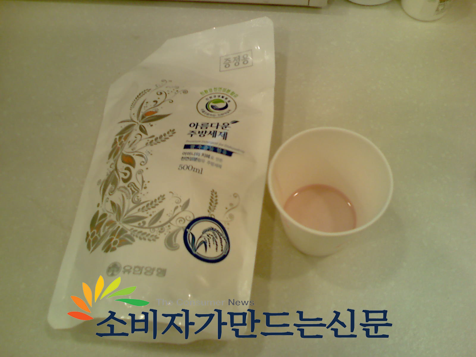 유한양행이 친환경세제로 출시한 '아름다운 주방세제'가 물감 처럼 빨갛게 변색돼 도저히 제품을 믿고 사용할 수 없다는 제보가 본지에 접수됐다.