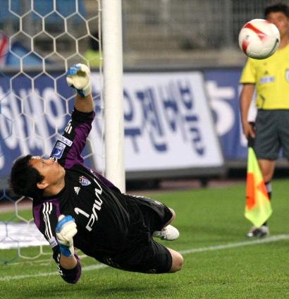 경기 후 이운재는 “집중하자고 많이 생각한다”면서 “골키퍼 자리에 서면 누구나 막아야겠다는 욕심을 가지게 되는데 초심으로 돌아간 것이 좋은 결과를 가져왔다”고 선방의 비결을 밝혔다.(사진=연합뉴스)