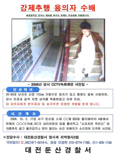 이 사건은 2006년 10월2일 오후 5시경 서구 둔산동 소재 모 아파트 엘리베이터 4층에서 발생했다.