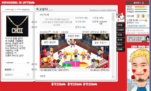 최홍만은 10일 오전 자신의 싸이월드 미니홈피 상단에 '죽고 싶다…'라는 글을 올리며 복잡한 심경을 토로했다.