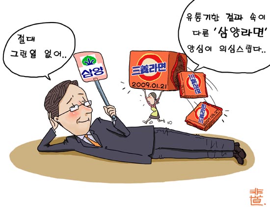 삼양식품이 유통기한이 1년 6개월이나 경과된 라면을 팔았다며 소비자 발끈하고 나섰으나 회사측은 "그럴수없다"며 완강하게 대응해 파문이 일고 있다.