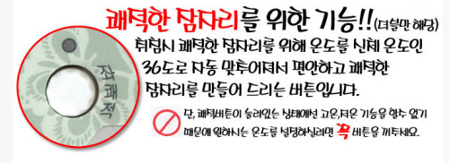 일월옥매트는 광고 문구에 ‘쾌적한 잠자리 기능이 있다'고 기재해 놓았다. 이 기능은 취침시매트의 온도를 자동으로 체온에 맞춰지도록 하는 것.