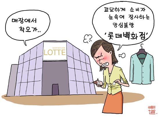 ['송곳'만평]"롯데백화점 가격 눈속임 장사 들통"