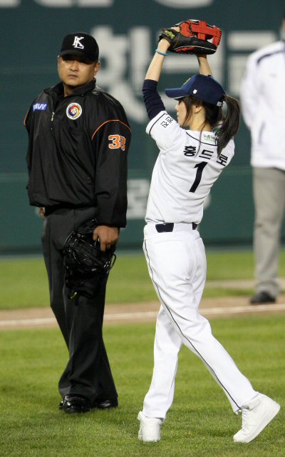 홍수아는 지난 2005년 두산과 삼성의 시구자로 나서 다른 여자연예인들과 다른 ‘개념시구’를 선보여 ‘홍드로’라는 별칭을 얻었다.