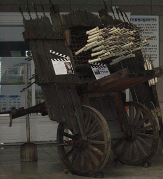 신기전은 세종(1448년)때 최무선의 아들인 최해산이 개발한 다연장 로켓 병기로 수십발의 화살을 동시에 발사할 수 있는 무기다.
