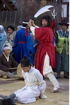 극중 정조(배수빈 분)의 어진을 찢은 죄로 참수형을 당하게 된 신윤복(문근영 분)이 도성 밖 처형장에서 오라에 묶인 채 마당에 펼쳐진 거적 위에 무릎을 꿇고 앉아 처형을 기다리고 있는 장면이었다.