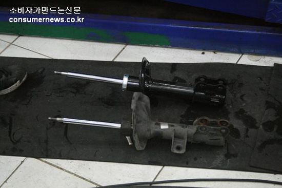 ( ↑↑↑ 'i30'(위)와 비교하기 위해 속업소버를 가져왔다)