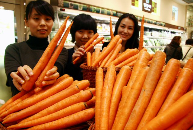 URL복사 기사공유하기 스크랩 프린트 메일보내기 글씨키우기 서울 소공동 롯데백화점 본점이 20일 일반 당근에 비해 얇고 길죽한 '빼빼로 당근'을 출시했다.이 당근은 길이가 무려 약20cm나 된다. 주로 샐러드용이나 생식으로 섭취하기 적합하다. 원산지는 제주산으로 가격은 100g 에 700원에 팔고 있다. 저작권자 © 소비자가 만드는 신문 무단전재 및 재배포 금지 임기선기자 다른기사 보기 URL복사 기사공유하기 주요기사 신세계·현대百 '무기한', 롯데 '5년'...상품권·페이머니 유효기간 '혼란' [AI시대의 그늘-AI태풍이 분다③] 식품사들 AI로 신제품 개발 경쟁 [따뜻한경영] LS '대학생 해외봉사단’, 개도국서 학교 짓고 교육 진행 '성수1지구' 수주전 재점화…현대건설-랜드마크 vs. GS건설-설계 차별 이성현 코인원 대표, 취임 1년 만에 흑자전환·점유율 10% 돌파 노삼석 체제 한진, 매출 3조 안착…종합 물류 플랫폼으로 전환 가속