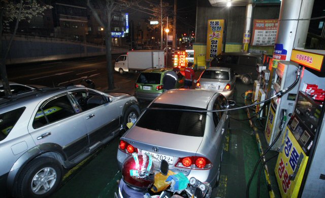 이 곳에도 알뜰 운전자들이 많이 몰려 북새통을 이루고 있다.(사진=연합뉴스)