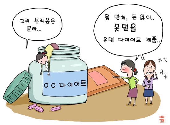 유명연예인등을 앞세워 '한 달에 10kg이상 확실한 효과' '요요현상 걱정 뚝'등의 과대광고로 판매한 후 효과가 미진할 경우 "개인차 운운"하는 핑계로......>>>>>