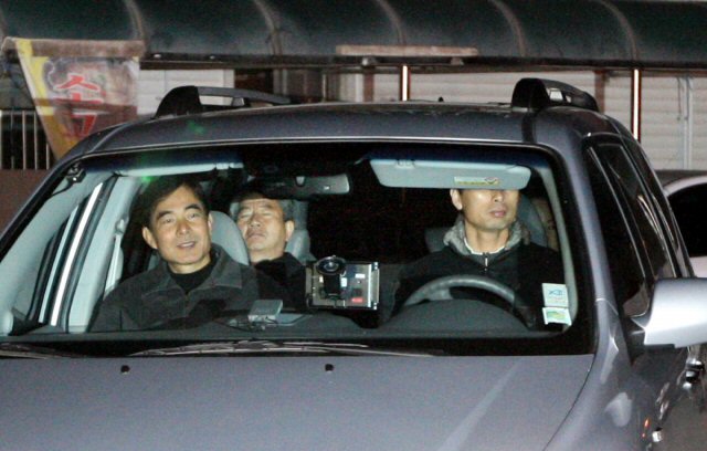 노 전 대통령이 이날 저녁 할머니 제사를 위해 건평씨 집으로 들어서고 있다.차량에 뒷좌석에 부인 권양숙 여사와 함께 앉은 노 전 대통령은 눈은 감은 채 다소 지친 표정이다.(세번째 사진)