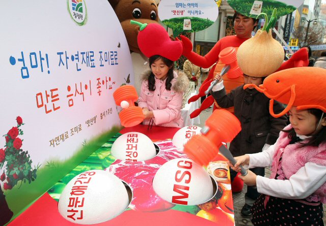 URL복사 기사공유하기 스크랩 프린트 메일보내기 글씨키우기 "에잇~죽어라" 1일 오전 서울 명동에서 열린 청정원 '맛선생' 1주년 기념 '화학첨가물 잡기' 행사에서 어린이들이 각종 화학첨가물의 이름이 적힌 공을 망치로 때리고 있다. 대상(주) 청정원은 자연조미료의 안정성과 화학첨가물의 위험성을 알리기위해 행사를 준비했다고 밝혔다.(사진=연합뉴스) 저작권자 © 소비자가 만드는 신문 무단전재 및 재배포 금지 백진주기자 다른기사 보기 URL복사 기사공유하기 주요기사 금융당국, 문서화한 계리가정 미적용 시 책임자 명시...내부통제 강화 나선다 포드코리아, ‘에프엘오토코리아’로 사명 변경…딜러 중심 체제 전환 기아, ‘더 뉴 니로’ 디자인 공개...3월 출시 예정 제주삼다수, 330ml 용기 무게 약 14%↓...플라스틱 180톤 절감 기대 테일러메이드 어패럴, ‘굿바이 윈터 프로모션’ 진행 젝시믹스, 러닝 컬렉션 'RX' 지난해 매출 200억 달성