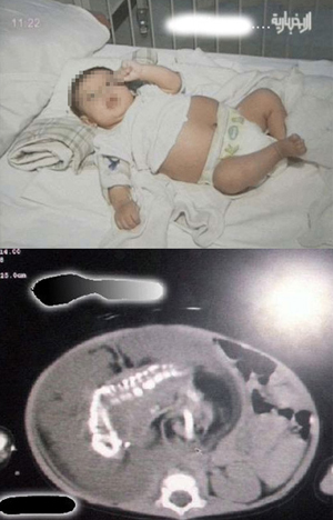 이 같은 증상은 여자 아이의 쌍둥이 혹은 형제자매가 착상에 실패, 아이의 뱃속에 자리 잡게 된 것이라는 현지 의료진들의 설명이며 1살 난 여자 아이의 태아 제거 수술을 검토 중인 것으로 전해졌다.