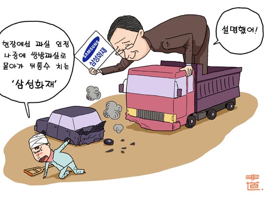 “현장에선 자신들의 과실을 인정하더니 나중에는 쌍방 과실로 몰아가는 삼성화재의 행위에 분노를 금할 수 없습니다. 교통사고 피해환자의 치료 받을 권리를 교묘하게 압박하는 파렴치한 행위를 어찌 가만두고 볼 수 있겠습니까!”