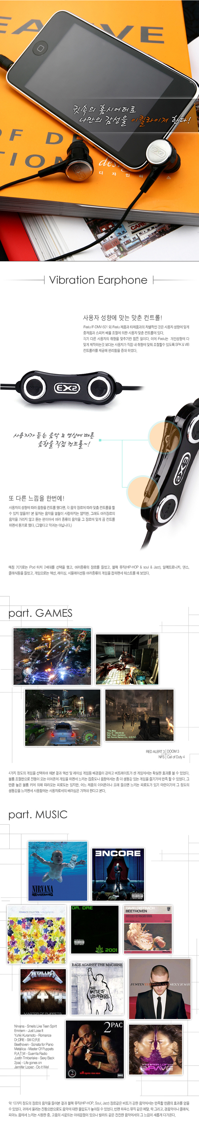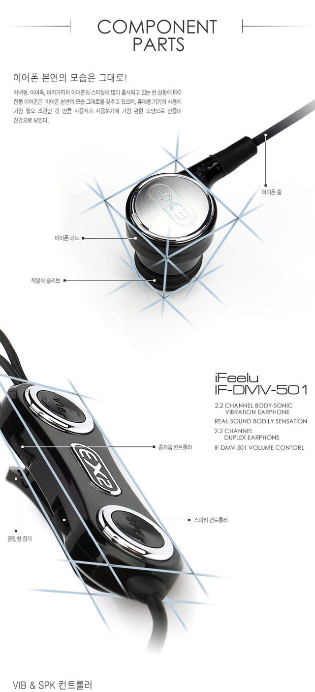 타 이어폰과의 다른 EX2만의 볼륨&저음 컨트롤러는 누구나 손쉽게 사용할 수 있도록 되어 있다. 제조사 측에서 권장하는 셋팅 방법으로 설정을 해도 손 쉽게 진동을 느낄 수 있다. 컨트롤러에는 볼륨과 저음 컨트롤 부분이 글씨로 쉽게 표기되어 있어 나만의 세밀한 이퀄라이져 세팅도 쉽게 할 수 있다.
