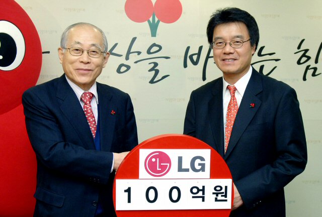 LG(회장 구본무)가 연말을 맞아 경기침체로 어려움을 겪고 있는 이웃과 소외계층을 돕기 위해 6일 사회복지공동모금회에 성금 100억원을 쾌척해 얼어 붙은 세밑을 훈훈하게 하고 있다.