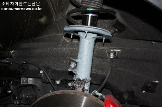 <쇼바엑스 밴딩 작업까지 마무리 된 모습.사진의 뒤 매트 부분은 언더코팅 전인 상태>