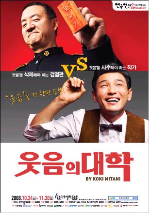 연극 <웃음의 대학>은 전란의 시대, 민중에게 가벼운 웃음을 선사하는 희극을 없애려는 냉정한 검열관이 민중의 웃음에 모든 것을 건 극단 '웃음의 대학' 극작가의 대본을 검열하면서 벌어지는 7일간의 해프닝을 그린 작품이다.