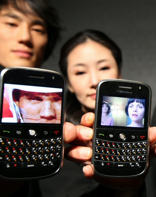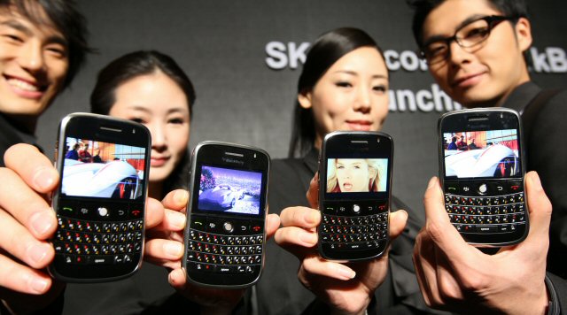 16일 서울 광진구 쉐라톤 워커힐 호텔에서 열린 SK텔레콤과 캐나다 림(RIM)사의 블랙베리 9000볼드(Bold) 출시행사에서 모델이 '블랙베리 9000 Bold' 스마트폰 단말기를 보여주고 있다.