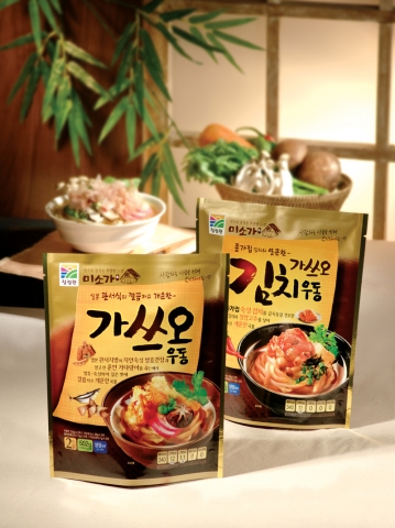 ‘김치 가쓰오 우동’은 ‘종가집’에서 만든 숙성 맛김치와 청양고추를 급속동결 건조한 건더기가 들어 있어 얼큰하면서도 개운한 국물 맛이 강점이다. 조리과정에서 가쓰오소스와 함께 종가집 김치건더기와 건조야채건더기를 먼저 넣고 물을 끓이는 것이 차이점이다. 가격은 할인점 2인분 기준으로 ‘가쓰오 우동’은 4,370원, ‘김치 가쓰오 우동’은 4,480원.