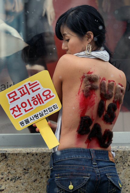 URL복사 기사공유하기 스크랩 프린트 메일보내기 글씨키우기 "모피 입은 귀부인님들 날~좀 봐요" 동물사랑실천협회,그린피플 네트워크,한국동물보호연합 회원 등이 20일 오후 서울 명동의 한 백화점 앞에서 모피 반대, 동물학대 반대를 주장하는 행사를 진행했다.한 여성이 의류 매장 앞에서 '모피는 동물학대' 'FUR IS BAD'라는 내용의 상반신 누드 퍼포먼스를 하고 있다.(사진=연합뉴스) 저작권자 © 소비자가 만드는 신문 무단전재 및 재배포 금지 이민재 기자 다른기사 보기 URL복사 기사공유하기 주요기사 '해외주식 강제매각' 루머에 미래에셋·카카오페이증권 약관 수정 서민금융진흥원, 지난해 휴면예금 3732억 원 지급…전년보다 24% 증가 대한항공인 줄 알고 결제했는데 '반값' 진에어...'공동운항' 바가지 개인정보 유출 사고나도 보상 '꽝'...카드사 '정보보호 서비스' 실상은? 한국토요타 3년 연속 판매↑…신형 라브4로 올해 1만대 돌파 기대 【분양현장 톺아보기】 북오산자이 리버블시티, 초품아+자차 15분 '매력'