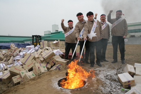 [소비자가만드는신문=백진주 기자] 식품안전 관련 사고가 유난히 많았던 2008년 세밑에 대상이 사장과 임직원, 협력업체 관계자등 270여명이 참석한 가운데 회수한 품질불량 제품을 불사르는 화형식을 열어 화제다.