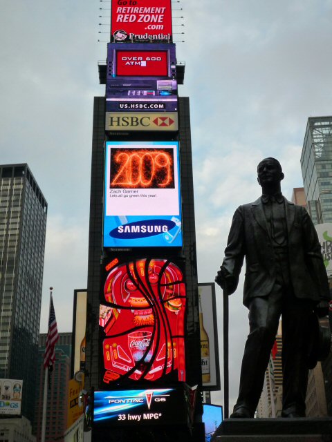 삼성은 미국 뉴욕 타임스퀘어에서 전광판 노른자위 자리를 차지, 터줏대감 노릇을 해 눈길을 끌고 있다. 전광판에 응모자들의 새해 소망을 소개하는 새해 맞이 행사를 진행하고 있다.