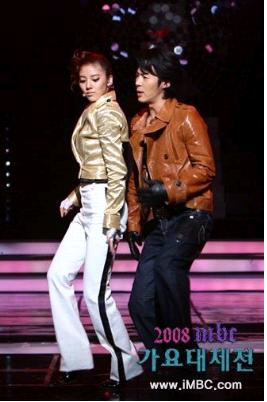 손담비와 전진은 31일 경기도 일산 MBC 드림센터와 임진각 평화누리에서 이원 생방송 진행된 2008 MBC가요대제전에서 합동 공연을 펼쳤다.