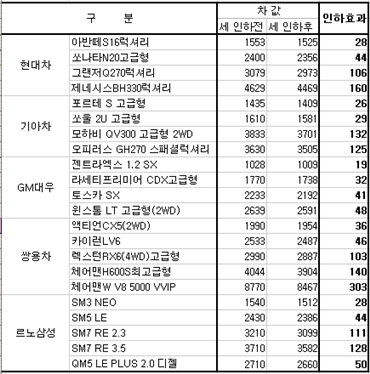 이에 앞서 기획재정부는 작년 12월 19일부터 올해 6월까지 한시적으로 승용차에 붙는 개별소비세를 2000cc 이하 승용차는 5%에서 3.5%, 2,000cc 초과 승용차는 10%에서 7%로 인하한다고 발표했다.
