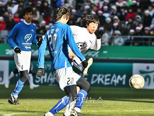 이날 김c는 홍명보 전 올림픽대표팀 코치와 오범석(사마라FC) 이청용(서울) 신홍기(수원 코치) 김봉수(전남 골키퍼 코치) 등과 함께 팀을 이뤘다.